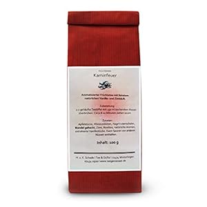 Früchtetee Kaminfeuer, Lose Blätter, Apfelstücke, Hibiscusblüten, Haggebuttenschalen, Mandeln, Zimt, Rooibos, Vanille…