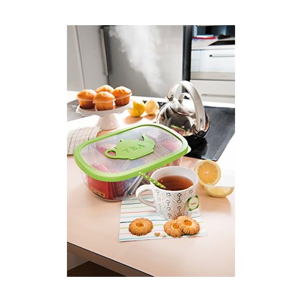 - Außenabmessungen: 29x21x9cm (LxBxH). Inhalt: 3 Liter. Farbe: Grün/Transparent.